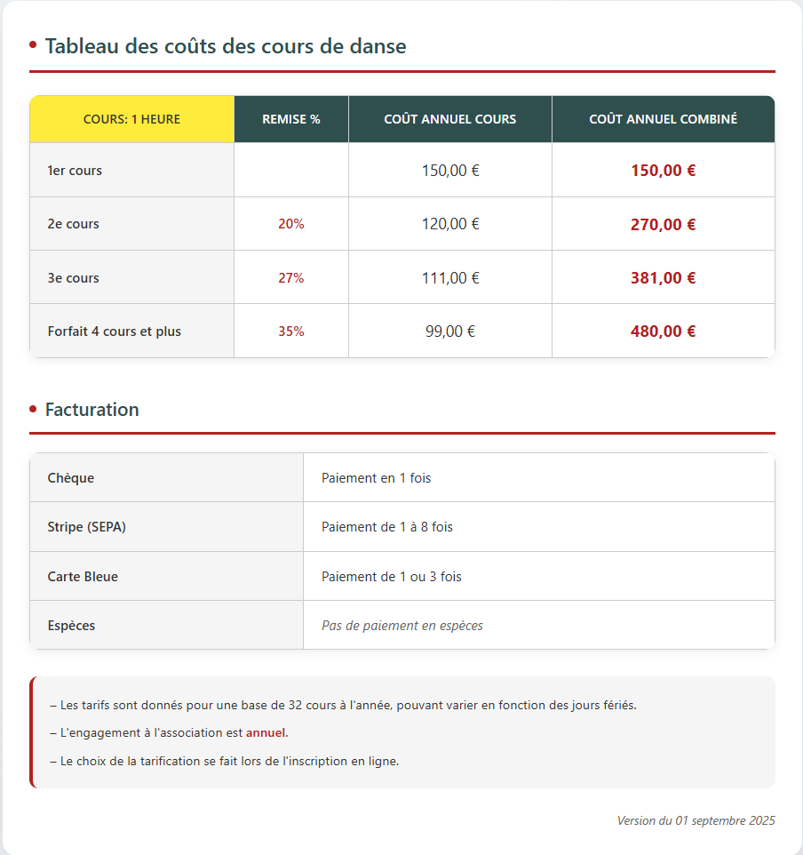 Découvrez nos tarifs attractifs pour la Saison 2025-2026.