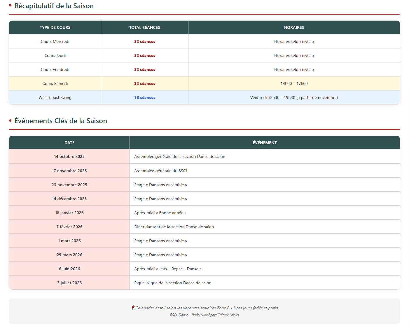 Bienvenue sur la page d'inscription pour la Saison 2025-2026 du BSCL Section Danse de Salon.