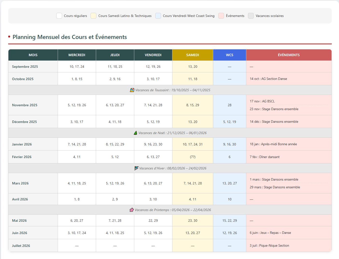 | 3 juillet 2026 | Pique-Nique de la section Danse de salon |